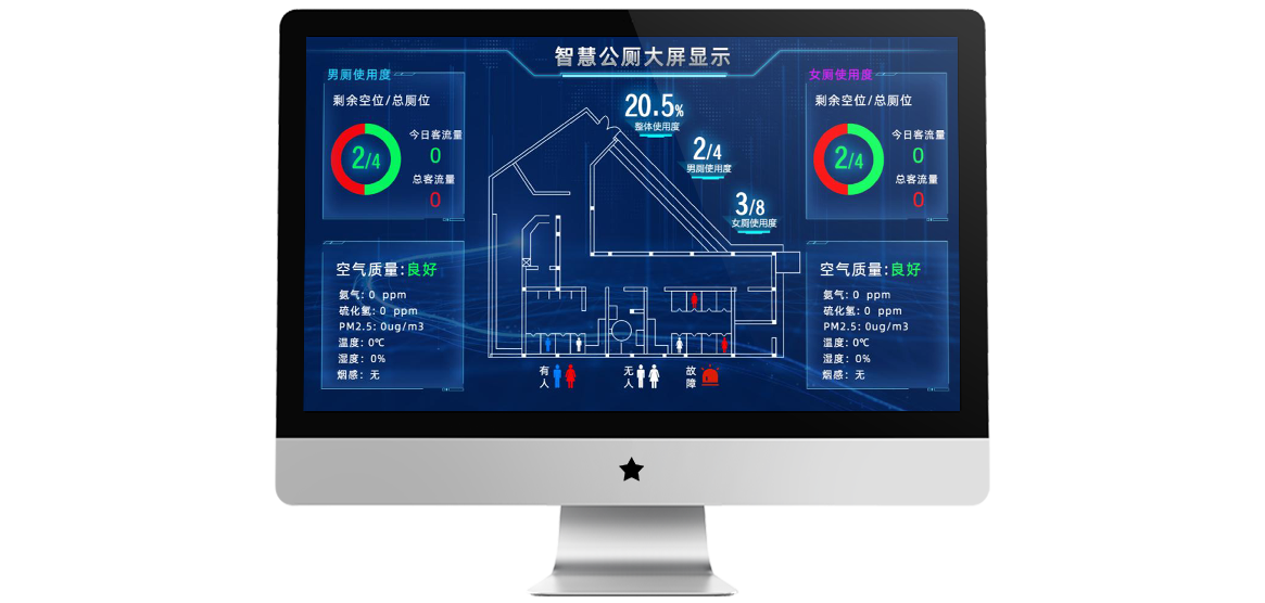 2、实时监测厕所占用、空气质量、人流量、温湿度等